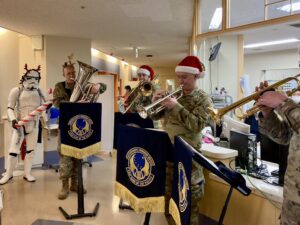 SOHの皆さんが子どもたちのためにたくさんのプレゼントを用意してくださり、横田基地ブラスバンドによるクリスマスメロディが、院内を一瞬でクリスマスの雰囲気に包み込みました。